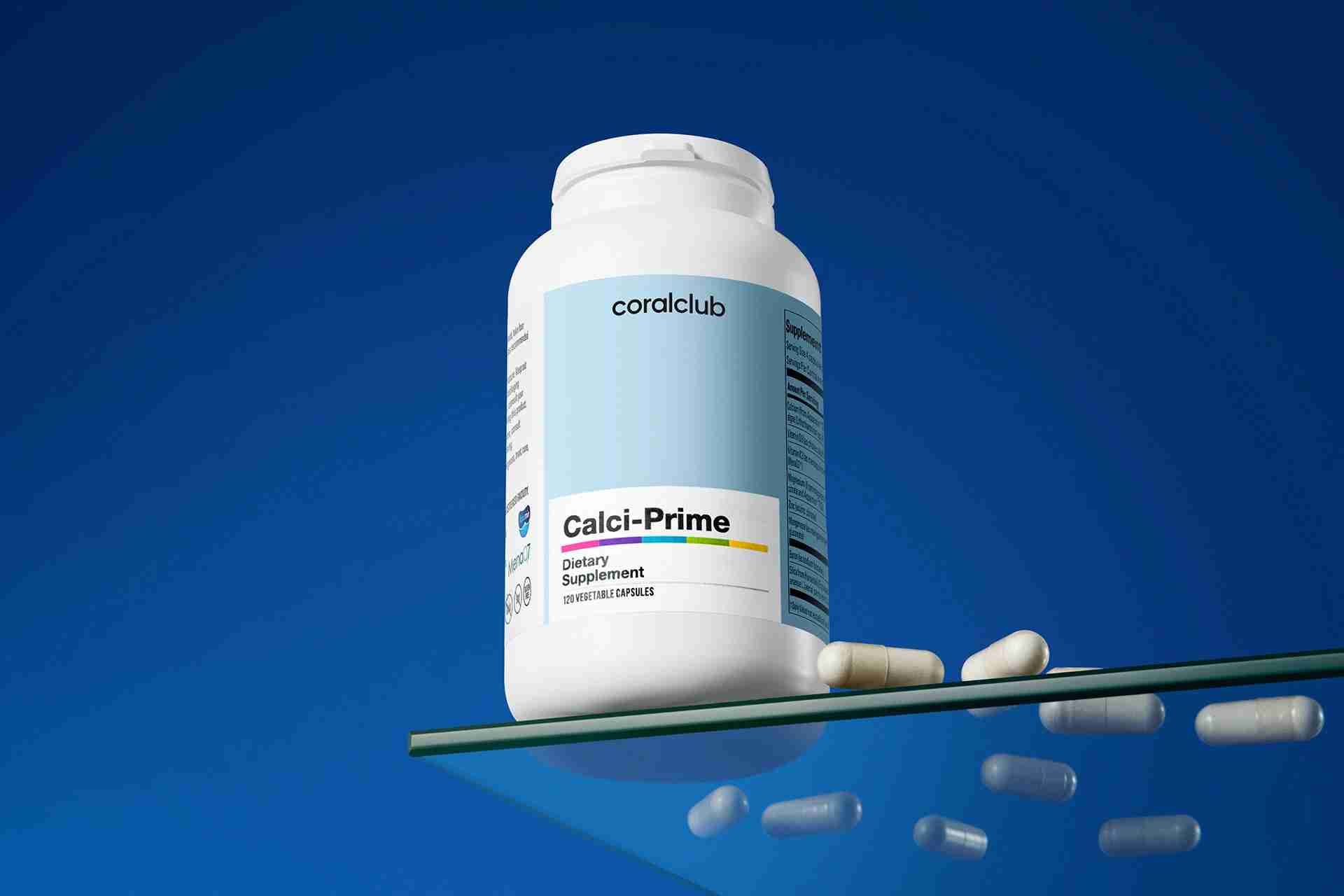 Активні інгредієнтиВміст в одній капсулi % ДРВС* Кальцій з Aquamin TG (червонi водоростi літотамнії)137,5 мг 17.20% Магній (з магнію цитрату та з Aquamin TG)40 мг 10.60% Сiлiцiй (з екстракту трави хвоща польового)2 мг - Вітамін К2 (менахінон-7 MenaQ7®)18,8 мкг 25.00% Цинк (цинку цитрат)1,34 мг 13.40% Марганець (марганцю глюконат)0,25 мг 12.50% Бор (натрію борат)0,2 мг - Вітамін D3 (холекальциферол)1,25 мкг 25.00% Допоміжні компоненти: капсула (гідроксипропілметилцелюлоза), антиспікаючi агенти (магнієва сіль стеаринової кислоти, кальцію фосфат, магнію карбонат). *ДРВС - добові референсні величини споживання. MenaQ7 - торгова марка NattoPharma AS, Норвегiя Вага нетто: 104,26 г